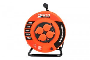 Kabel prodlužovací na bubnu venkovní FESTA INDUSTRY 3x1.5mm 50m 230V max 3680W 4 zásuvky guma IP44