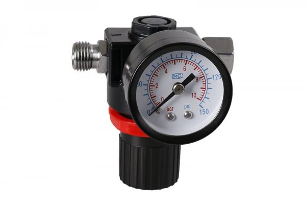 - regulátor slouží k nastavení požadované úrovně tlaku vzduchu v soustavě pro jednotlivá pneumatická zařízení